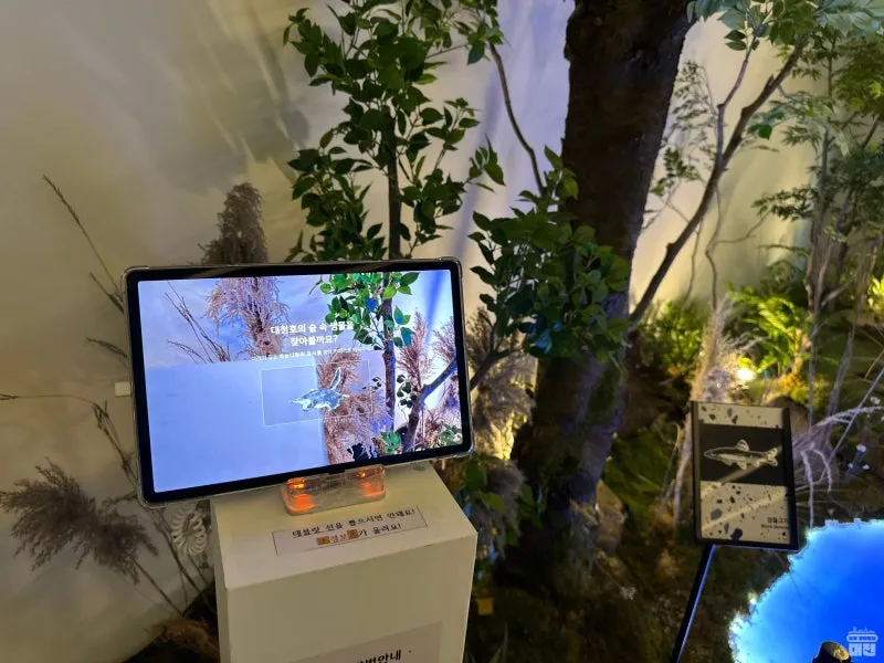 대청호 주변 숲속에 살고 있는 다양한 생물들을 디지털 기술을 활용해 쉽고 재미있게 소개하고 있어요. 전시관 곳곳에는 터치형 스크린과 인터랙티브 전광판이 설치되어 있어 관람객이 직접 화면을 터치하며 생물 정보를 확인할 수 있도록 꾸며져 있답니다. 단순한 전시를 넘어 배움의 놀이터의 기능도 하고 있었답니다.