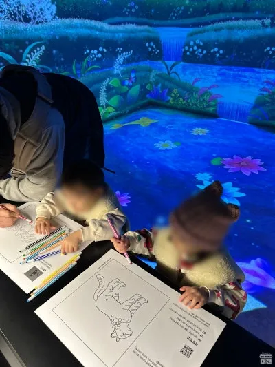 아이들이 직접 생물을 색칠하고, 그 그림이 화려한 미디어아트 공간에 등장하는 특별한 활동을 할 수 있답니다. 이 체험은 단순한 색칠 공부를 넘어 자연과 예술, 그리고 디지털 기술이 어우러지는 생생한 경험을 선물해 줍니다. 직접 선택하여 색칠한 대청호의 생물이 미디어아트 공간에 나타나는 것을 보며 상상력과 창의력도 올라가고 자연 생물에 대해 흥미와 애정을 키워줄 수 있겠다는 생각이 듭니다. 집중하며 체험해보는 저희 아이들을 보니 그것도 너무 소중한 시간이었답니다.