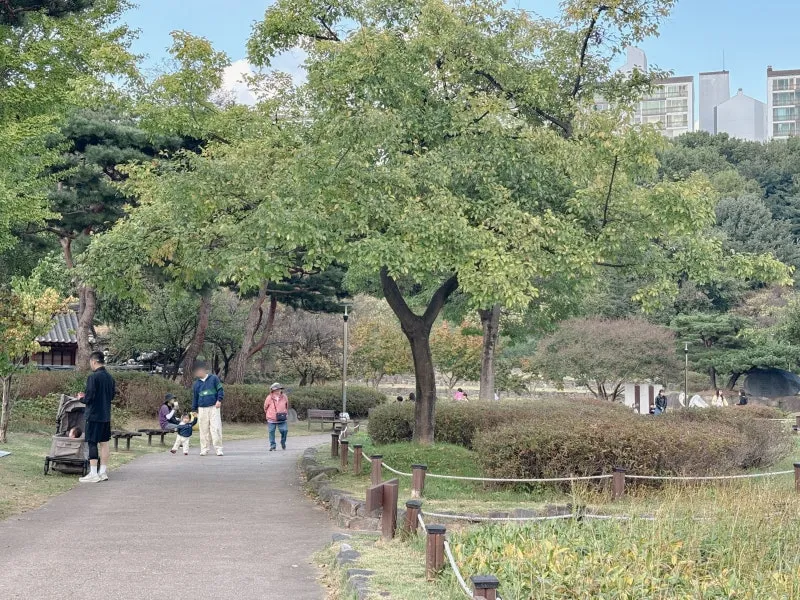 공원 규모는 꽤 넓습니다. 잔디광장, 연못, 산책로, 고택이 어우러져 있고, 한쪽에는 숲길처럼 이어진 나무길도 있습니다. 도심 속에서 이렇게 자연과 전통이 함께 있는 공간은 흔하지 않은데 그래서인지 평소에도 주민들이 많이 찾고, 주말이면 가족 단위 방문객으로 붐비는 곳입니다.