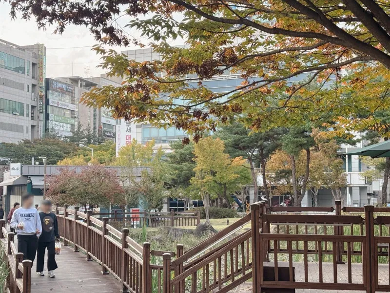 공원에 들어서자마자 느껴지는 건 ‘가을이다’였습니다. 나뭇잎이 노랗고 주황빛으로 물들어가며 바뀌고 있었고, 햇살이 나뭇잎 사이로 비쳐서 금빛처럼 반짝였습니다. 바닥엔 낙엽이 수북하게 쌓여 있었는데, 그 위를 걸을 때마다 바스락거리는 소리가 마음까지 편하게 해주는 기분이 들었습니다.