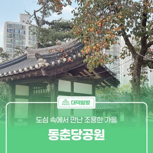 ‘동춘당’이라는 이름이 조금 낯설 수도 있는데, 조선시대 대학자였던 송준길 선생의 별당 이름에서 따온 것이라고 합니다. 실제로 공원 안에는 송준길 선생이 머물렀던 별당 건물이 그대로 남아 있어서, 걸으면서 역사와 함께 시간을 거슬러보는 기분이 들었습니다.