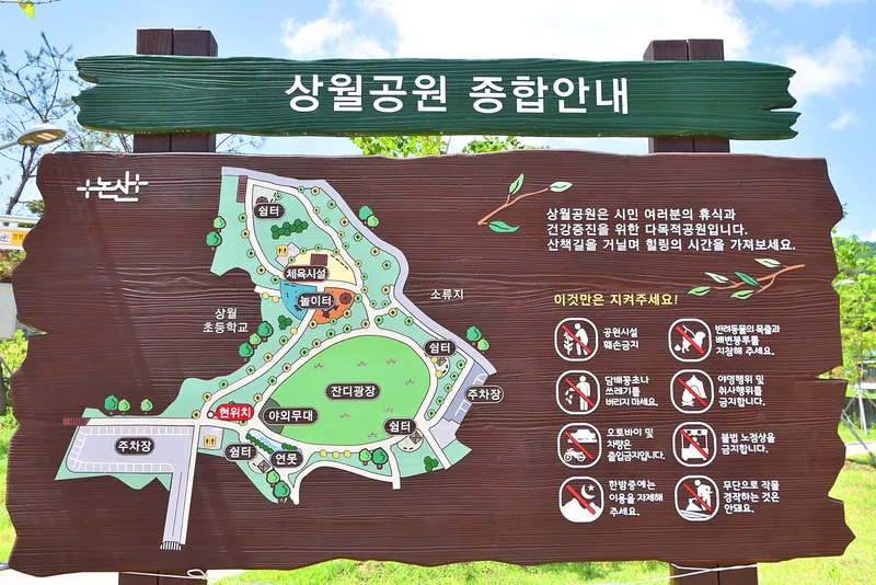 요즘 어느 곳을 여행하더라도 공원을 어렵지 않게 볼 수 있습니다. 논산 5품에 속한 상월고구마로 유명한 상월면은 상월면사무소 근처에 양함을 배향하는 신충사가 있고, 옆 골목에는 벽화마을이 형성되어있습니다. 그리고 최근에는 상월초등학교 오른쪽에 상월공원을 조성하였습니다.