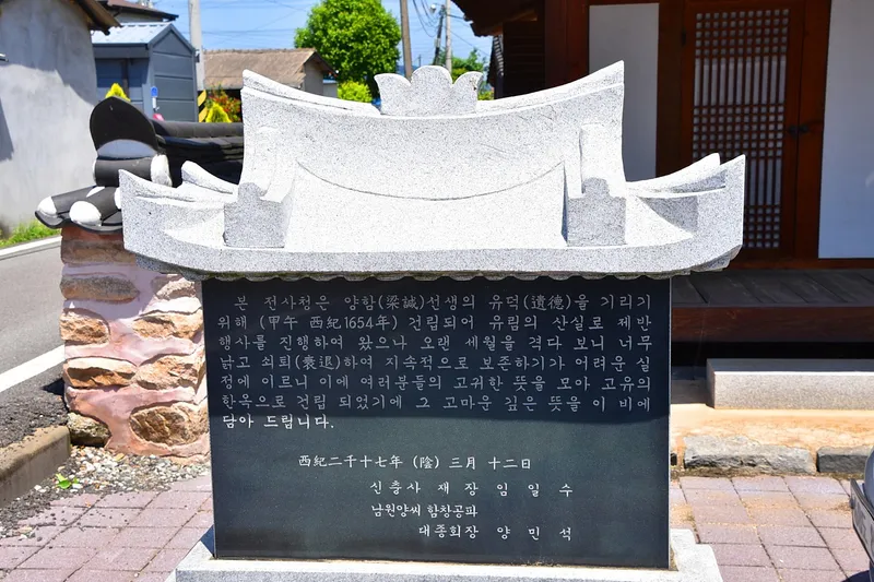 그리고 인구 왼쪽에 전사청이 서 있습니다. 전사청은 양함선생의 유적을 기리기 위해 1654년에 건립이 되어 유림의 산실로 제반 행사를 진행하였는데 오랜 시간이 지나면서 보존하기에 어려움이 있어 뜻을 모아 2017년에 고유의 한옥으로 건립되었습니다.