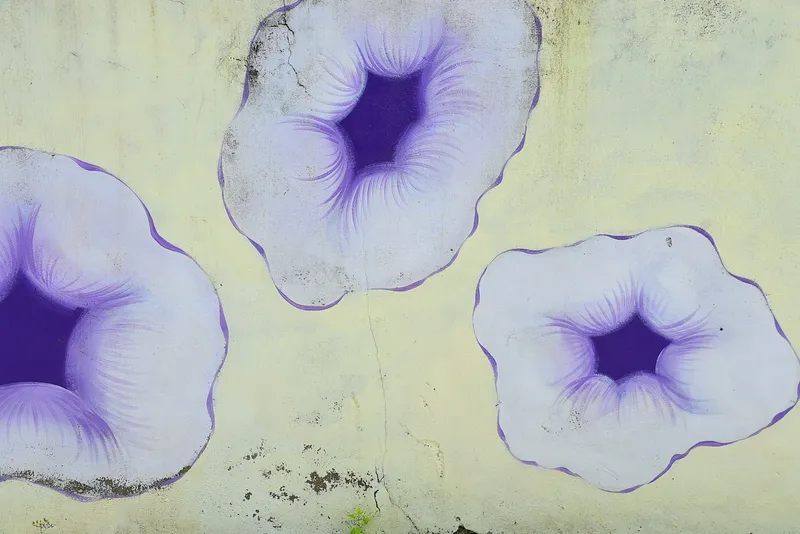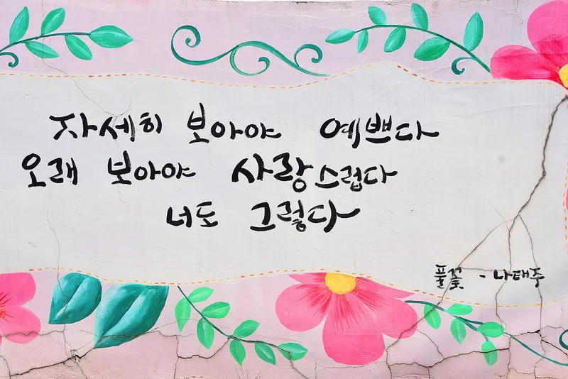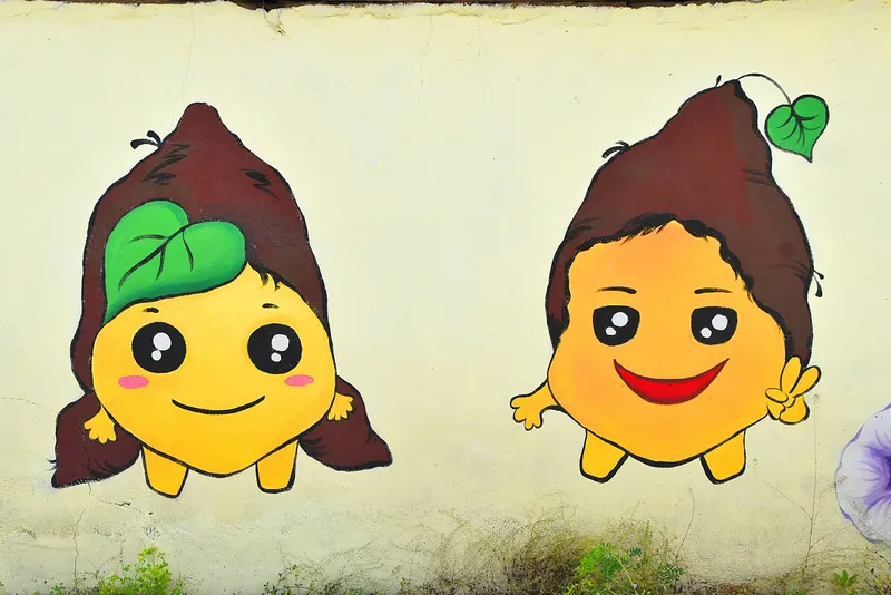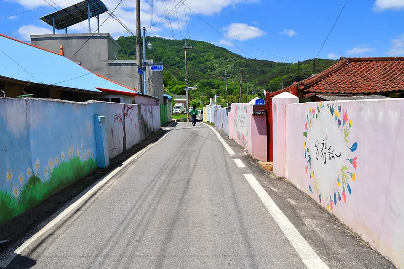 이곳 벽화에서 고구마의 꽃과 고구마도 볼 수 있어 이 지역의 멋을 보여 주고 있습니다. 길 양쪽의 벽에는 딸기와 고구마 말고도 다양한 그림이 그려져 있어 이곳을 찾은 사람들의 발길을 가볍게 만들어줍니다.