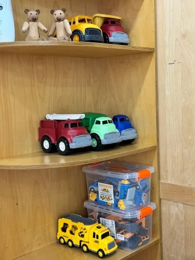 맞은편에는 카페놀이 및 기타 주방놀이 장난감들이 정돈되어 있고,