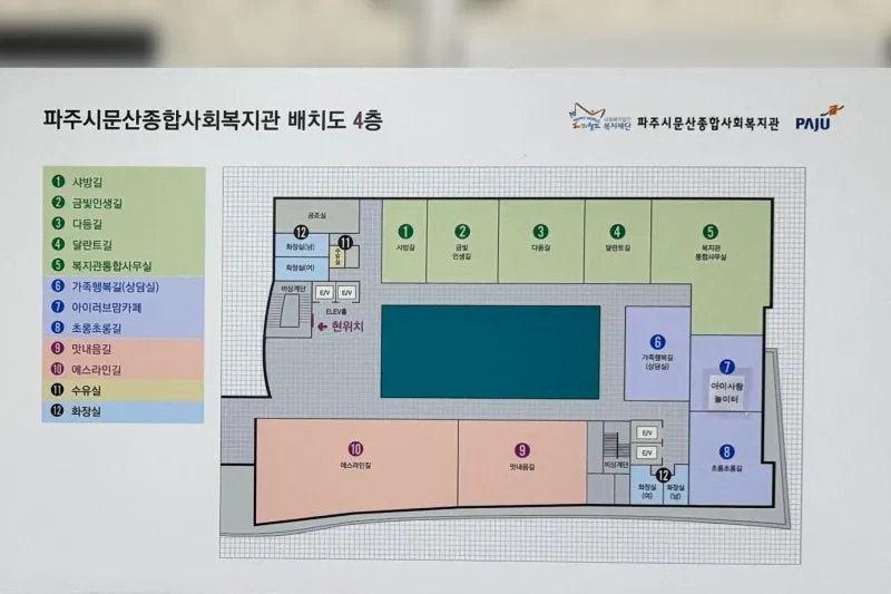 파주시문산종합사회복지관과 같은 건물인 4층에 있습니다.