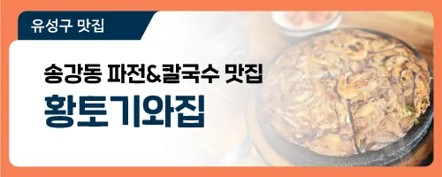 오늘은 대전 유성구 송강동에 위치한 황토기와집을 소개해 봤습니다. 파전과 칼국수, 보쌈까지 전 메뉴를 맛봤는데요. 모든 메뉴가 맛이 좋았습니다. 비록 장마는 지났지만, 맛있는 파전과 칼국수가 생각나시는 분들은 한번 들러보셔도 좋을 것 같습니다.