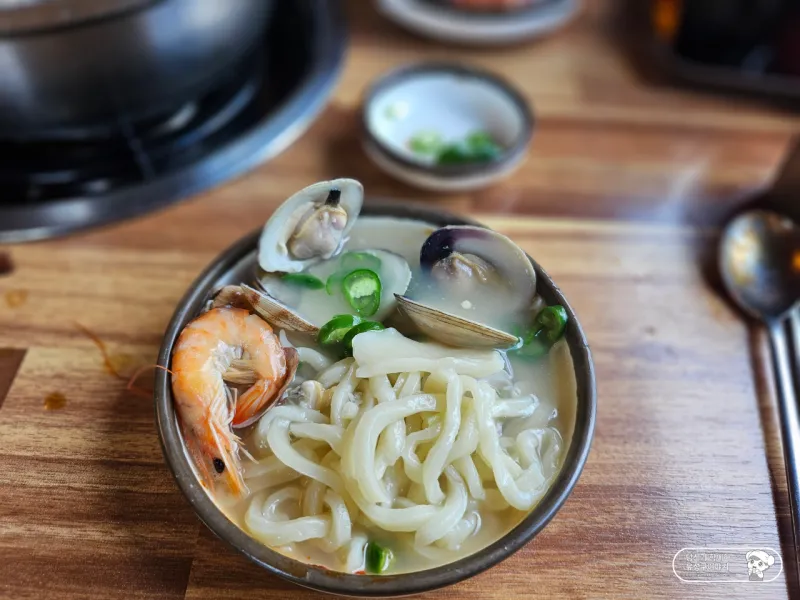 새우와 바지락, 백합까지 해산물을 까먹는 재미도 있고 시원한 국물과 쫄깃한 칼국수 면을 맛보는 즐거움까지 아주 좋았습니다.