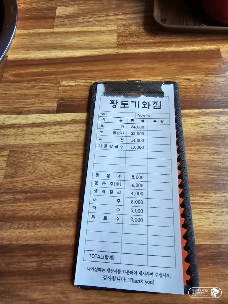 황토기와집의 메뉴는 보쌈과 파전, 칼국수가 전부입니다. 칼국수와 어울리는 동동주와 막걸리도 판매하고 있네요. 저희는 여러 메뉴가 맛보고 싶어서 보쌈과 파전 칼국수를 모두 주문했습니다.