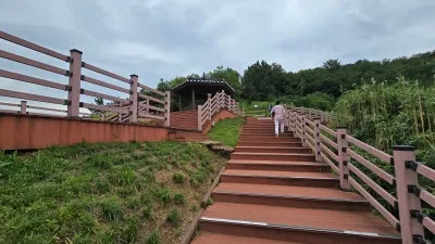수로부인상 앞쪽에는 언덕을 오르는 계단길 양 옆으로