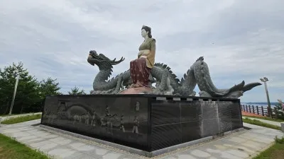 수로부인과 그 용을 형상화 한 조각상이 멋진 자태로 앉아 있었습니다.