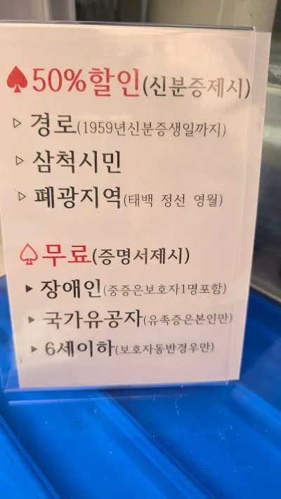 삼척시민, 경로우대(65세이상), 폐광지역(태백, 정선, 영월)시민