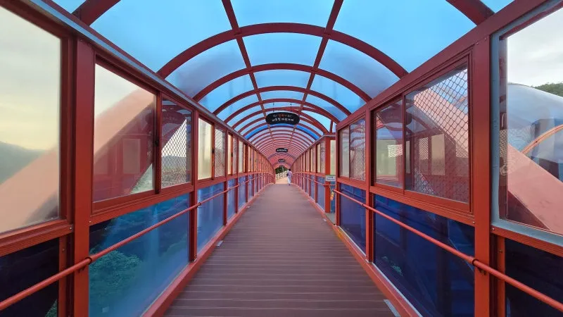 엘리베이터를 내리면 바로 구름다리가 터널처럼 이어져 있는데요.