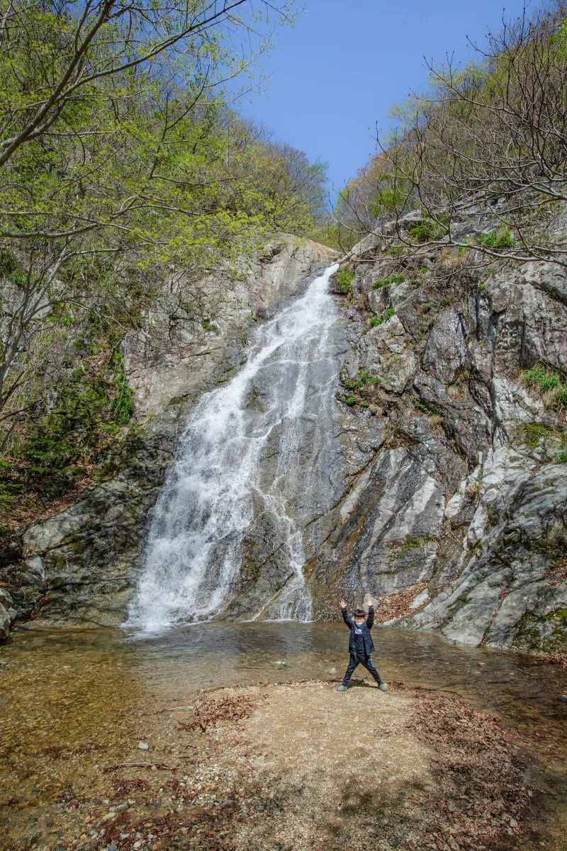 비가 많이 오지 않는 겨울이라, 문동폭포의 폭포수는 많이 미약하였는데요. 참고를 위해 예전 늦봄 아이와 산 벚꽃을 보러 왔었던 문동폭포의 사진을 참고하시라고 올려 봅니다. 실제 장마철 비가 온 직후 방문을 하시면 정말 멋진 문동폭포를 보실 수 있네요.