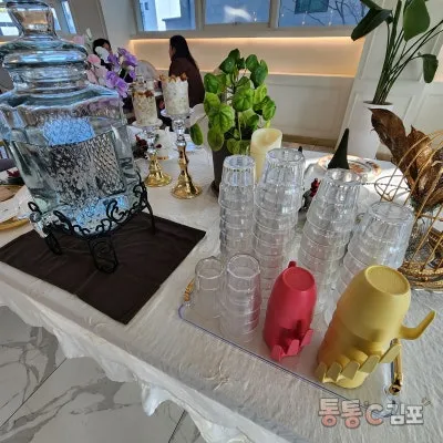 어른들을 위한 유리컵과 아이들을 위한 플라스틱 컵이 준비되어 있어서 좋더라고요. 요즘 1회용품 안 쓰기 하고 있는데 아주 맘에 들었어요!