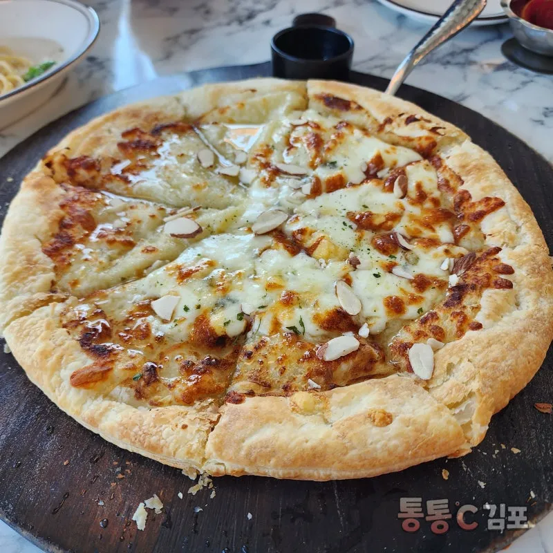 개인적으로 넘 맛있게 먹었던 고르곤졸라 피자~! 평소에 피자 별로 잘 안 먹는데 요건 아주 맛있었어요.