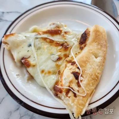 한 조각 덜어서 먹는데 역시 베이커리 맛집이었어요. 도우가 정말 예술이네요.