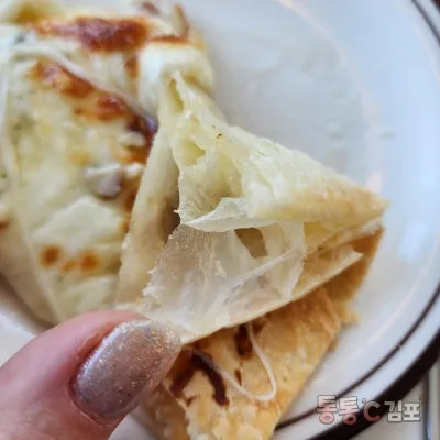 페스츄리 스타일 도우가 한 겹 한 겹 떨어지는데 넘 부드럽고 맛있어요. 달콤한 꿀까지 찍어 먹으니 더 환상적이었어요 ㅋㅋㅋ.