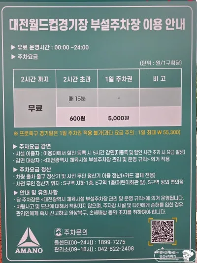 사실 대전월드컵경기장 주차장은 약 1년 이상 유료로 운영하고 있다가 근처의 주차난과 민원을 해결하기 위하여 요금을 대폭 인하한 것입니다. 경기가 없는 날 기준으로는 하루 최대 요금이 5,000원이니 기존보다 부담 없이 이용할 수 있습니다.
