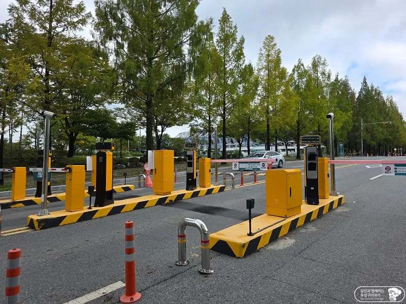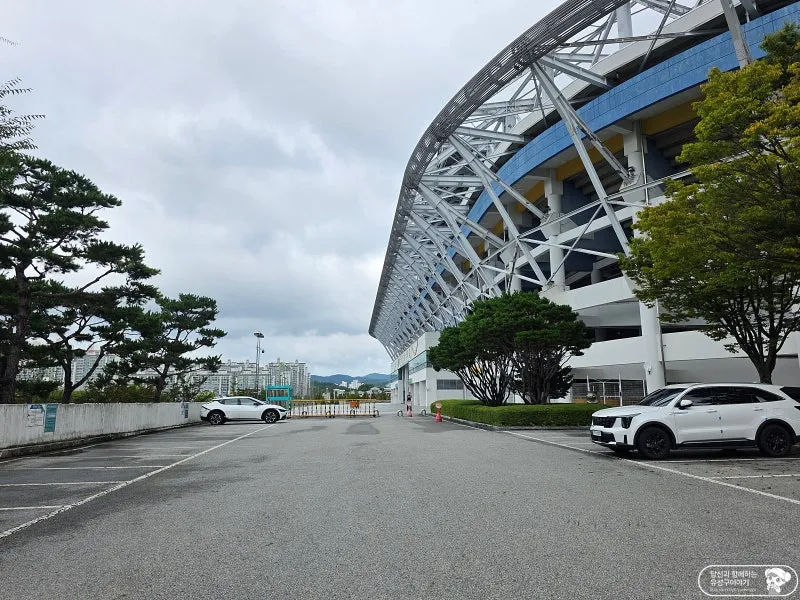 이번에는 야외주차장으로 와보았습니다. 경기장쪽 주차장과 길은 연결되지만 자동차가 통과할 수 있는 문은 잠겨있었습니다. 별도의 출입구를 통해 들어오시기 바랍니다.