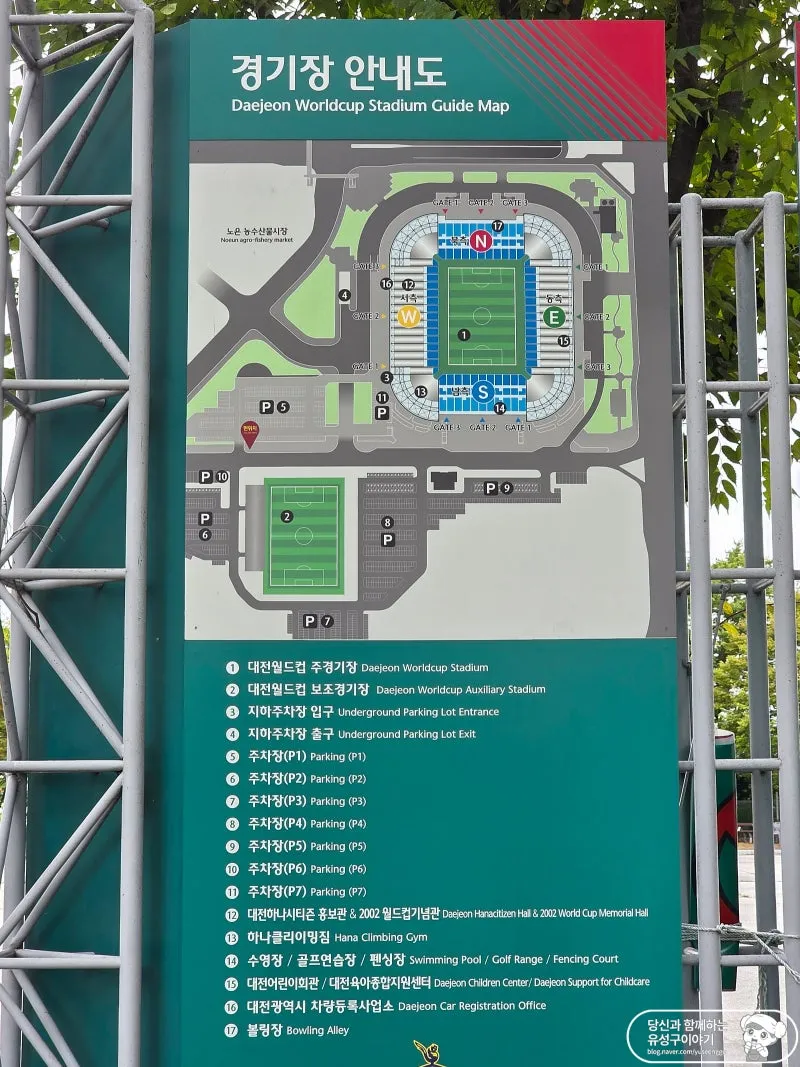 대전월드컵경기장의 주차장 구역까지 포함된 안내도를 첨부해 드립니다. 평소에 사용할 주차구역은 아주 넉넉히 있는 편입니다. 이곳에 오니 이전에 이곳에서 코로나19를 검진했던 것도 생각이 납니다.