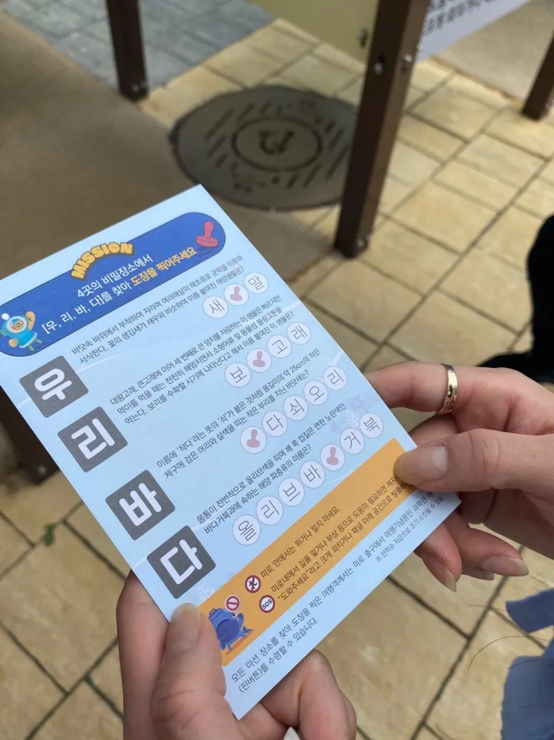 4곳의 비밀 장소에서 우, 리, 바, 다를 찾아