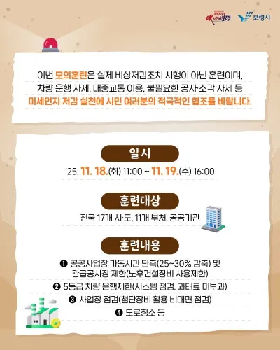 초미세먼지 고농도 시기 대비를 위한 ‘초미세먼지 재난대응 모의훈련’ 안내 ️