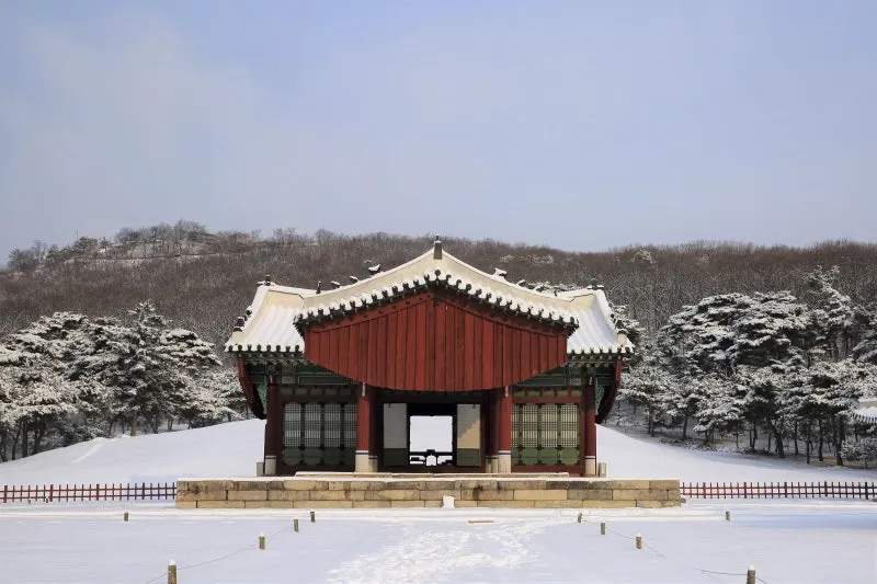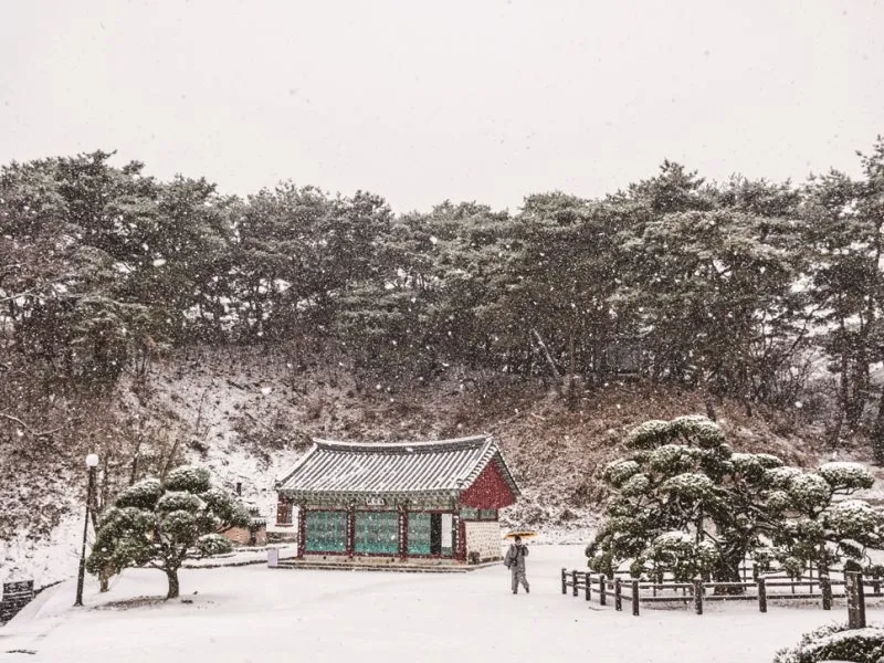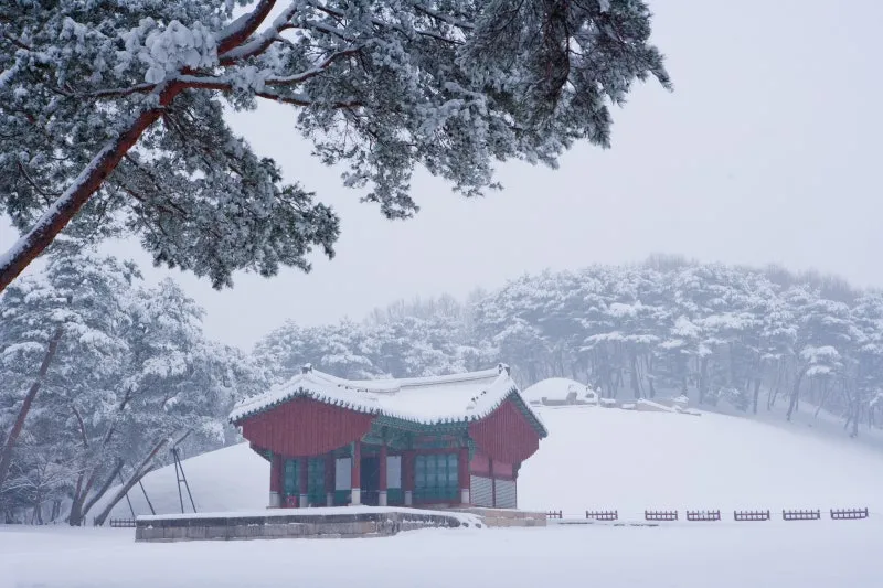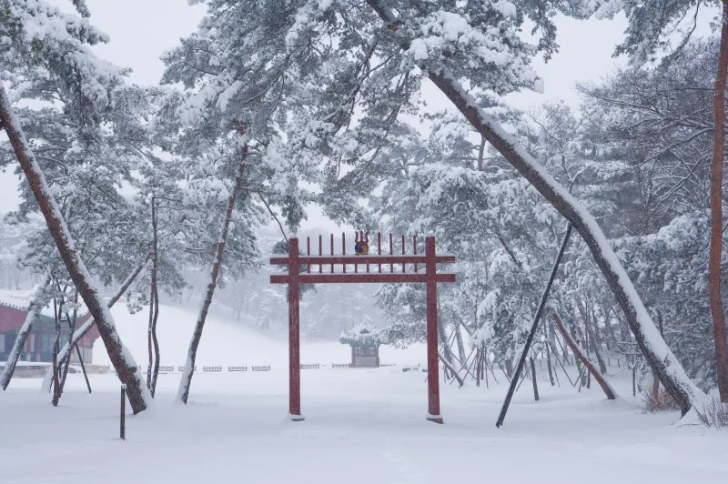 눈 덮인 소나무 숲을 지나 능으로 향하다 보면