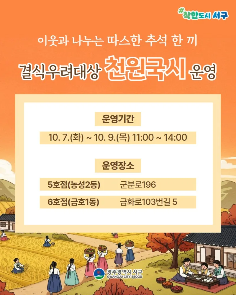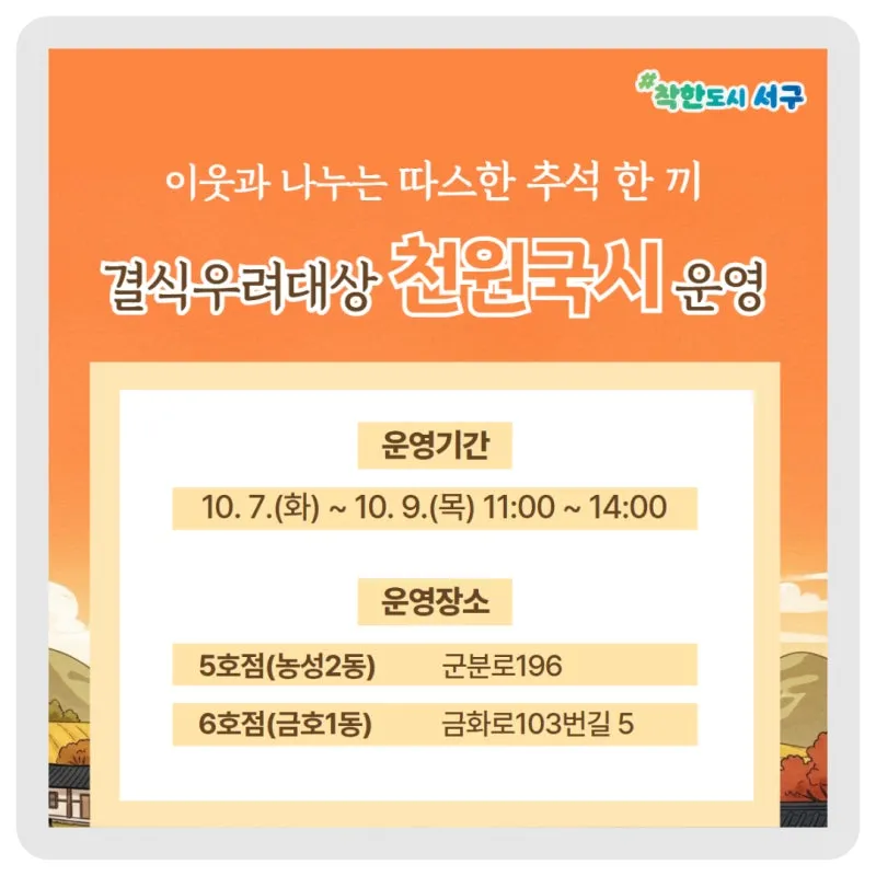 추석 연휴 결식우려대상 천원국시 운영
