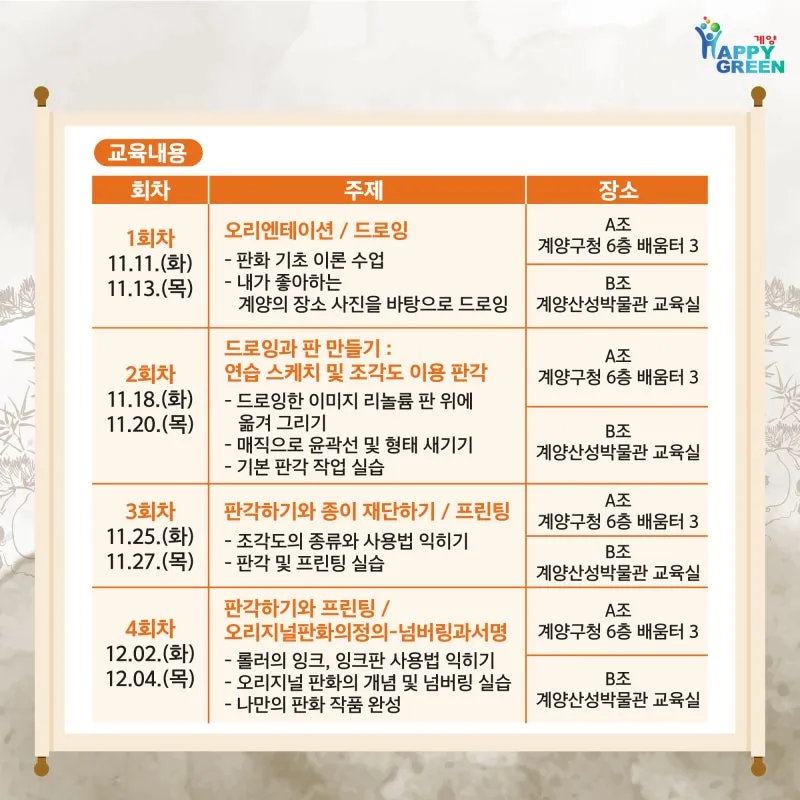 리놀륨판화강좌 <계양 우리동네 판화, 나의 시선으로 찍다> 수강생 모집