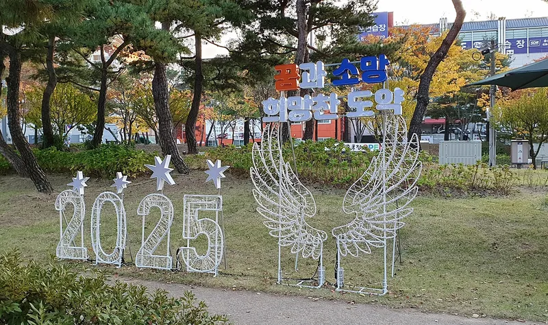 동춘당 곳곳에는 빛 조형물을 세워놓았는데, 어두워지기 시작하면 빛을 밝힐 것으로 보입니다. 2025년이 되려면 두 달 도 채 남지 않았는데, 동춘당 공원에는 이미 2025년을 세우고 '꿈과 소망 희망찬 도약'을 기원하는 모습입니다.