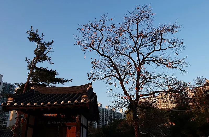 동춘당 주변의 감나무에는 잎은 다 떨어졌는데, 감은 아직도 많이 남아 있습니다. 감나무에 남겨놓는 감을 까치밥이라고 부르니, 동춘당 주변에 살고 있는 까치들은 정말 먹을 것이 많을 것입니다. 천고마비가 아니라 천고'까치'의 계절을 보내고 있습니다.