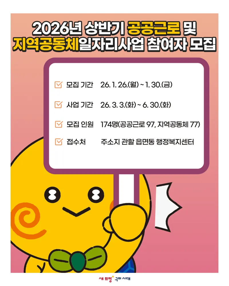 2026년 상반기 공공근로 및 지역공동체일자리사업 참여자 모집