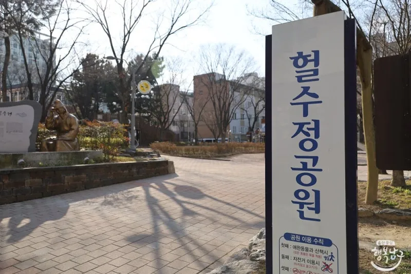 현재는 헐수정이라는 지명을 사용하고 있진 않은데요. 대신 공원 이름을 그 역사 이야기를 토대로 지었습니다.