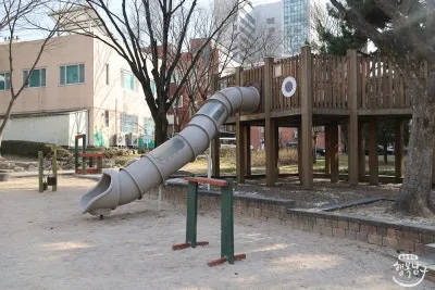 공원 안쪽에는 또 다른 놀이공간이 있습니다. 통형으로 된 미끄럼틀과 그네 등이 있습니다.