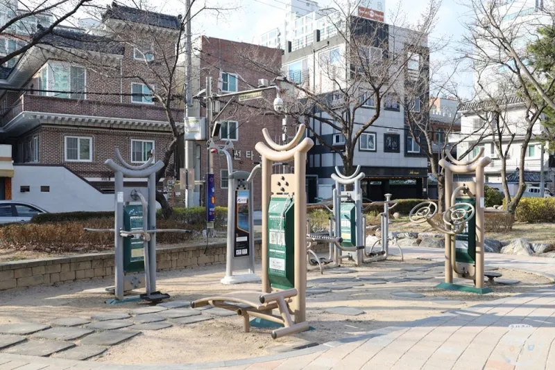 마을 주민분들이 가볍게 나와 신체를 단련할 수 있도록 운동기구도 설치되어 있습니다.