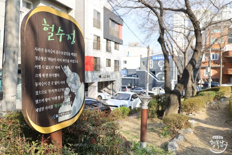 헐수정공원은 굉장히 흥미롭게도 삼호, 무거, 굴화 지역의 역사적인 스토리를 담고 있는 공원이며, 현재의 지명이 붙게 된 배경을 공원 내 안내판에서 확인할 수 있습니다. 지명이 붙게 된 배경이 무려 신라시대로 거슬러 올라간다니 정말 신기하죠!