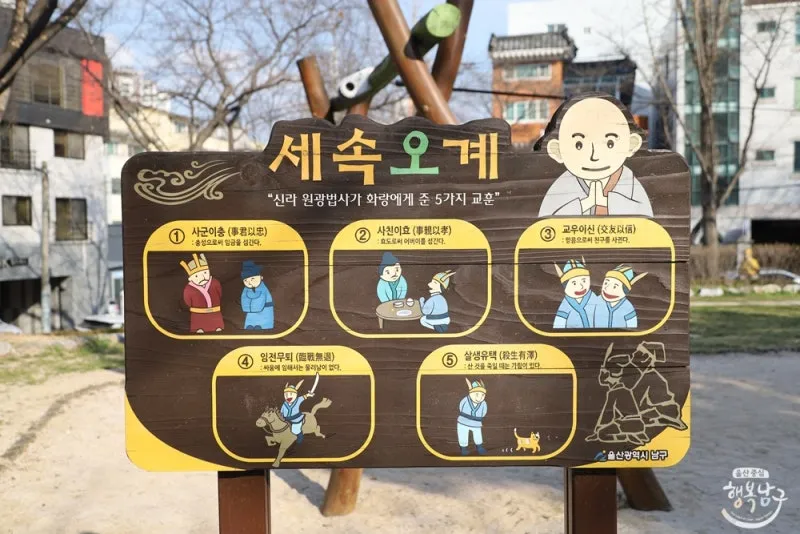 #헐수정 지명의 역사 스토리 속 등장하는 '원광법사'는 쇠락하는 신라의 화랑에게 '세속오계' 가르침을 전수하였습니다.