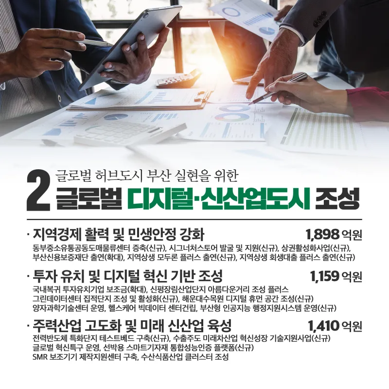 [주력사업 고도화 및 미래 신산업 육성: 1천410억 원] 지역 주력산업을 고도화해 신성장산업으로 발전시키고 미래 신산업을 육성해 부산을 글로벌 신산업도시로 키웁니다.