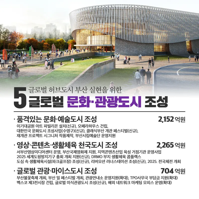 [문화․예술도시 조성: 2천152억 원] 모두가 누리는 품격있는 문화․예술 도시 부산을 실현합니다.