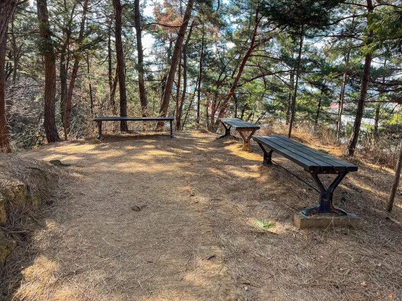 길을 따라 곳곳에 의자가 배치되어 있어