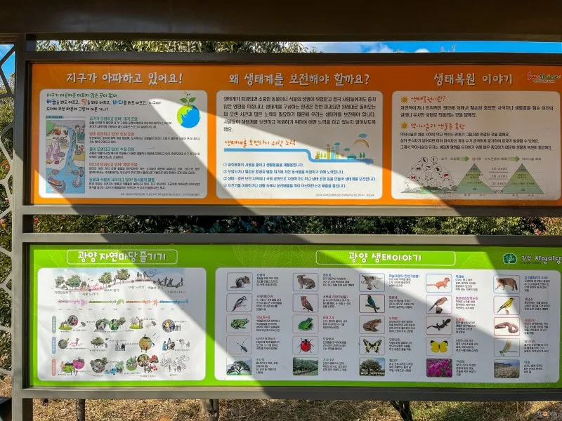 생태 교육 관련 표지판이 곳곳에 마련되어 있어, 학생 단위 혹은 가족 단위 방문에도