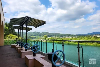 전시를 보고 나와 테라스로 발걸음을 옮기면 또 다른 풍경이 펼쳐집니다. 파란 하늘과 넓게 펼쳐진 대청호가 눈앞에 시원하게 들어오고, 물 위에는 구름이 그대로 비쳐 한 폭의 그림 같은 풍경입니다. 과거 정수장의 흔적이 남아 있는 건물과 자연 풍경이 조화를 이루며, 작은미술관 신탄진은 과거와 현재가 만나는 공간이 되었습니다.