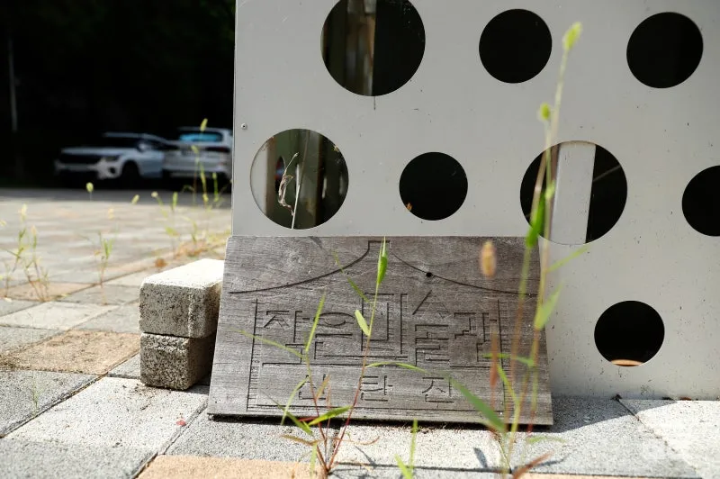 정수장 시절 사용되던 구조물은 그대로 남아 있어 공간을 더욱 독특하게 만듭니다. 주차공간도 마련되어 있고 대청호를 보며 쉬어갈 수 있는 흔들의자도 있답니다. 작은 미술관 어떤 모습인지 안으로 들어가 보겠습니다.