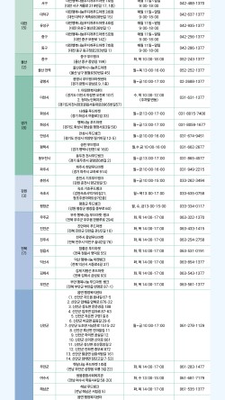 시도(개소수) 시군구 운영장소(주소) 운영시간 연락처 서울(2) 성동구 행당 제1동 주민센터 옹달샘 (서울 성동구 고산자로10길 18, 1층) 월~금 14:00-16:00 02-2286-7289 02-425-1377 영등포구 영등포구 푸드뱅크·마켓 (서울 영등포구 선유동1로 80) 월~금 9:00-18:00 02-2632-1377 부산(10) 서구 서구 푸드마켓 (부산 서구 부용로 26번길 21) 수,목,금 14:00-17:00 051-243-1367 동구 동구 푸드마켓 (부산 동구 중앙대로 298, B1) 월~금 14:00-17:...