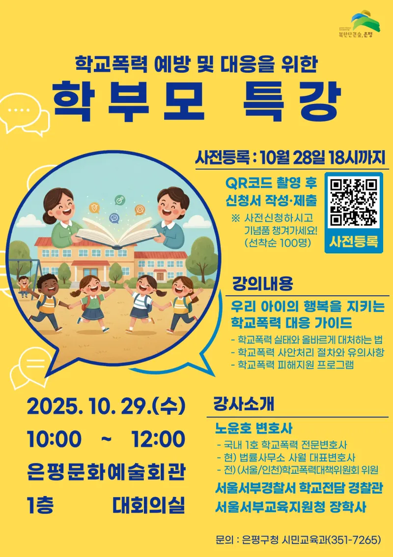 학교폭력 예방·대응 학부모 특강 "학교폭력 전문변호사, 학교전감경찰관, 장학사 강의"