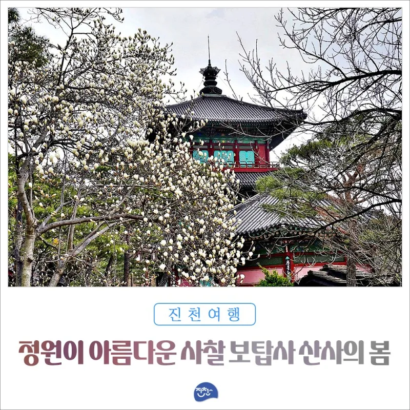 진천읍 연곡리에는 정원이 예쁜 보탑사가 있습니다. 각각의 건물 주변으로 예쁜 꽃이 식재되어서는 계절마다 많은 꽃들이 피고 집니다. 3월 말에 찾은 사찰은 개나리와 산수유, 목련 등이 만개하여서는 아주 화사한 풍경이었습니다. 한순간에 달려온 2023년의 봄을 조용히 즐기고 싶은 분들이라면 보탑사를 찾아보아도 좋겠습니다. 진천읍 연곡리는 도덕봉, 약수봉, 옥녀봉 등 아홉 개의 봉우리가 병풍처럼 펼쳐져 있어 마치 한 송이 연꽃이 피어난 모습처럼 아름다워 예부터 연곡리라 불리었다 합니다.