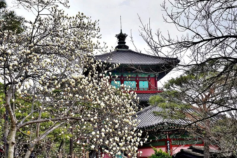 연곡리 석비에서 건너다본 사찰은 화사한 봄꽃이 어우러져 더욱 아름다워졌습니다. 미선나무가 만개하였고, 목련도 막 피어나서는 순백의 봄빛이 완성되었습니다. 지면에서 가깝게 피어난 형형색색의 봄꽃과는 또 다른 아름다움이었습니다. 보탑사는 현재 봄꽃들이 피어나며 더욱 화려해졌습니다. 사색을 즐기는 조용한 봄맞이로 찾아보셔도 좋았습니다.