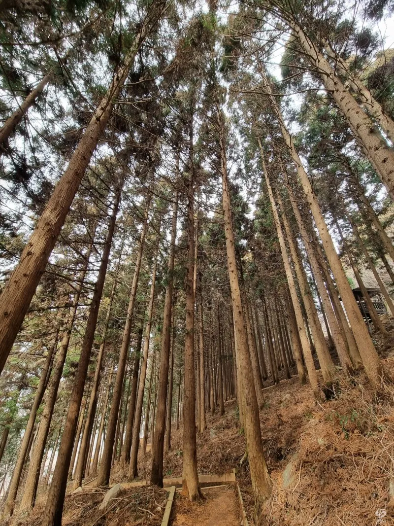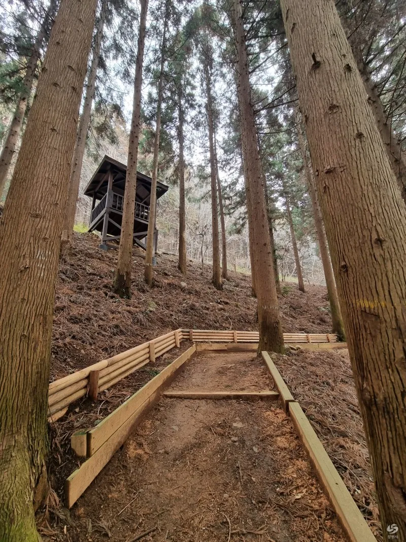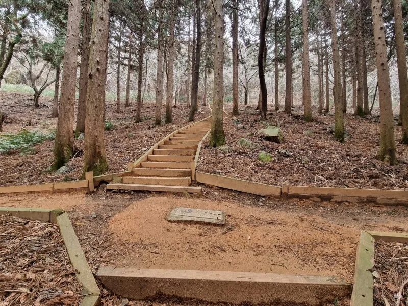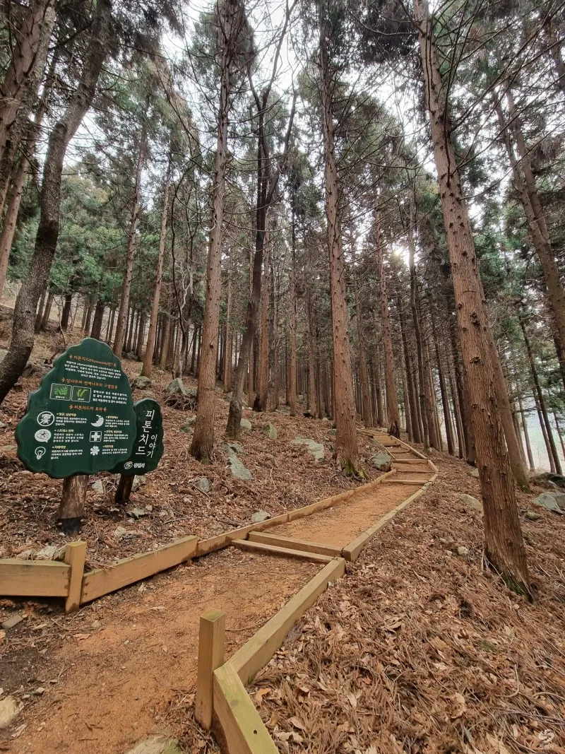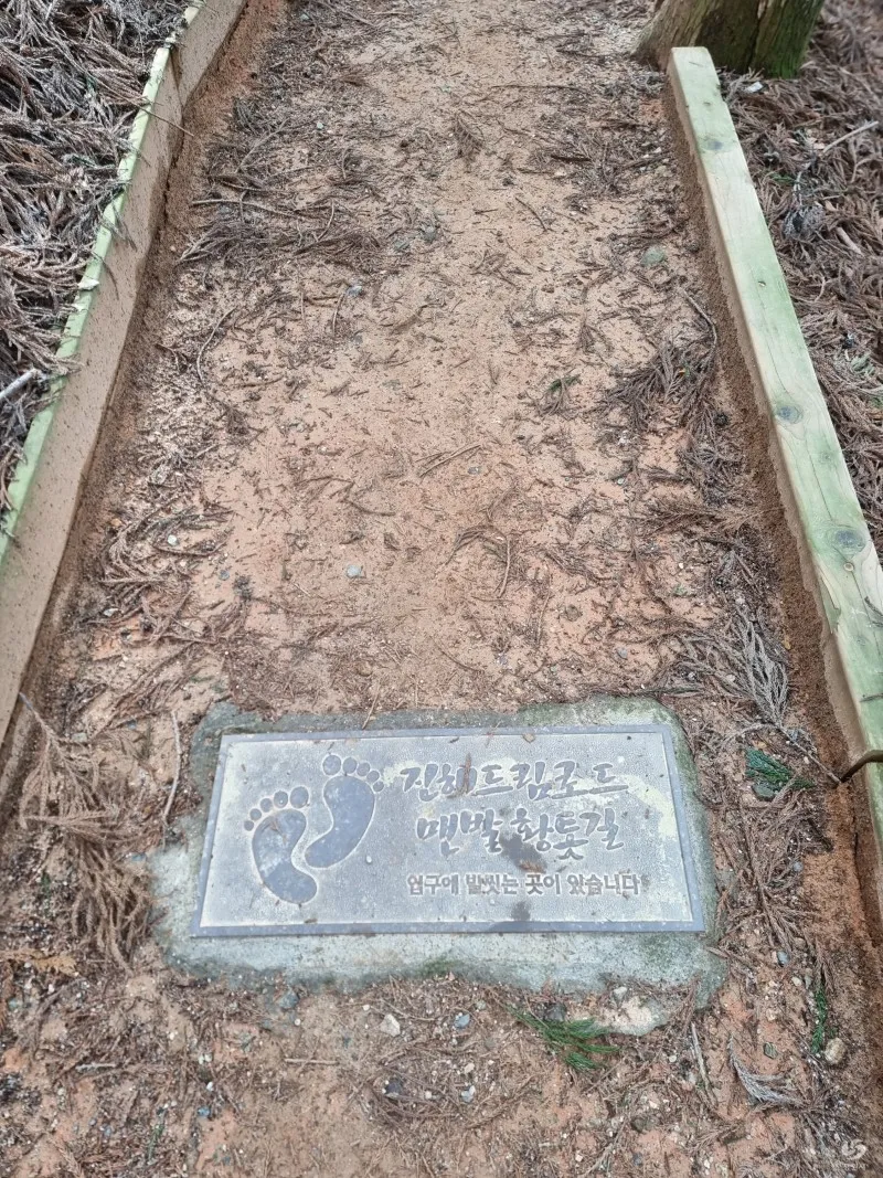 황톳길 입구에 들어서면 삼나무, 편백나무 등 울창한 숲의 피톤치드를 마시면서 맨발로 황톳길을 걸을 수 있기 때문에 힐링도 되고 아주 건강해지는 느낌을 받습니다.