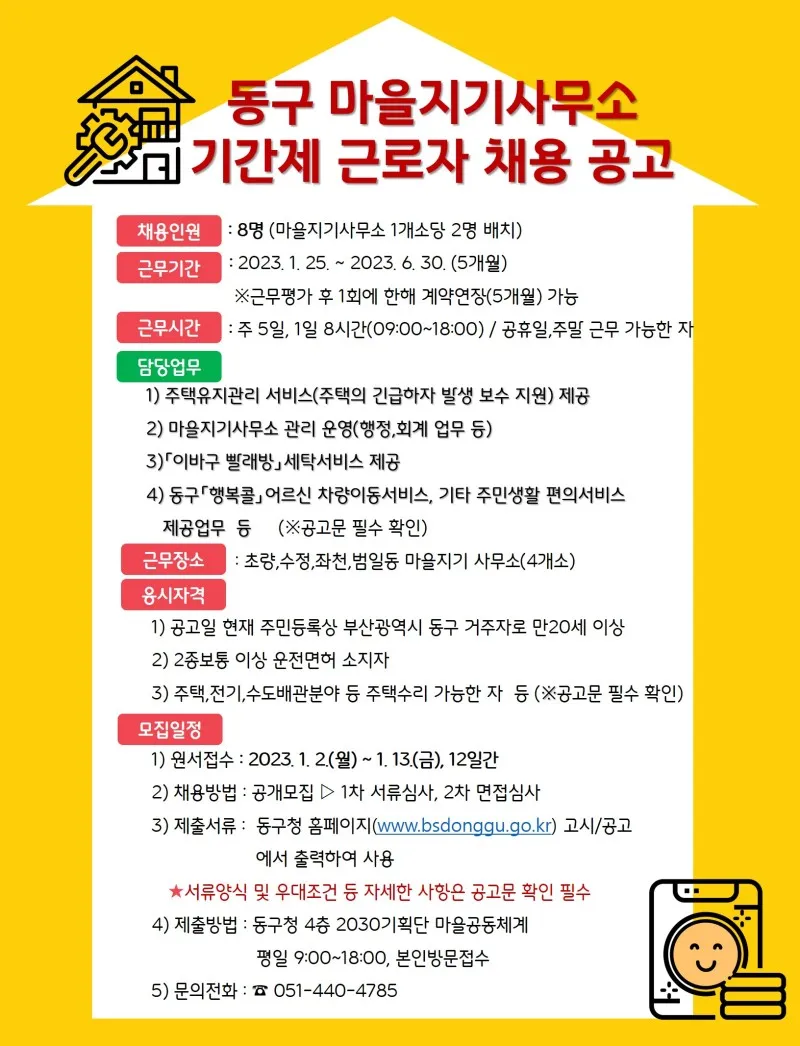🔹 근무장소 : 초량,수정,좌천,범일동 마을지기 사무소(4개소)